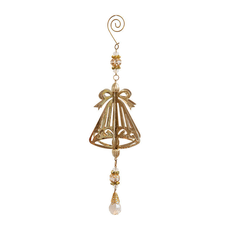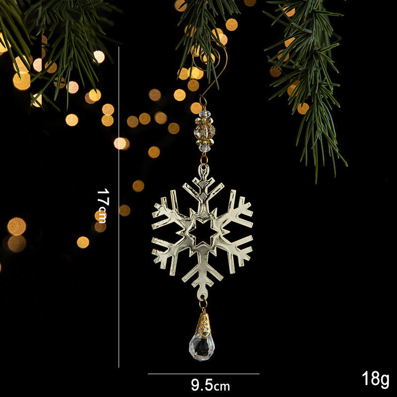 เครื่องประดับตกแต่งต้นคริสต์มาสแบบกำหนดเองส่วนบุคคล เกล็ดหิมะโลหะพร้อมจี้คริสตัล เกล็ดหิมะสีทองตัดด้วยเลเซอร์