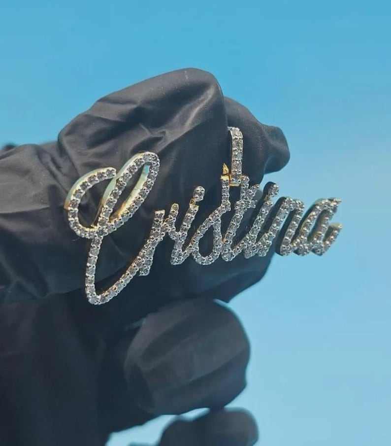จี้ฮิปฮอปแบบกำหนดเองส่วนบุคคล เงินแท้ 925 ผ่านการทดสอบเพชร VVS มอยส์ซาไนต์ ประดับเพชรเต็มตัวอักษรชื่อ
