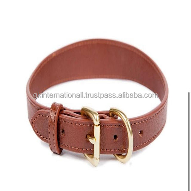 ปลอกคอสุนัขหนังแท้แบบกำหนดเองพร้อมหัวเข็มขัดสแตนเลสสตีลและแหวนเย็บที่โดดเด่นทั่ว