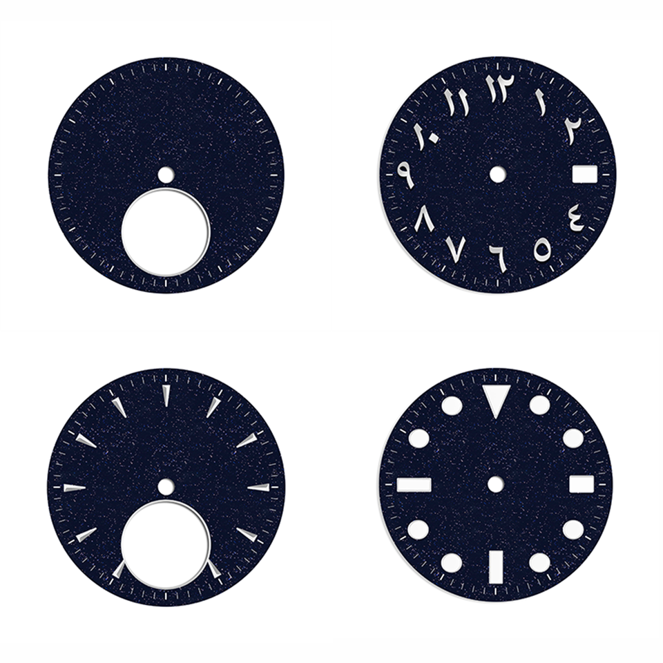 หน้าปัดนาฬิกาที่มีตัวเลขอารบิกสำหรับ NH35 9015 SW200สามารถกำหนดโลโก้ได้เองสีฟ้าและทรายทอง
