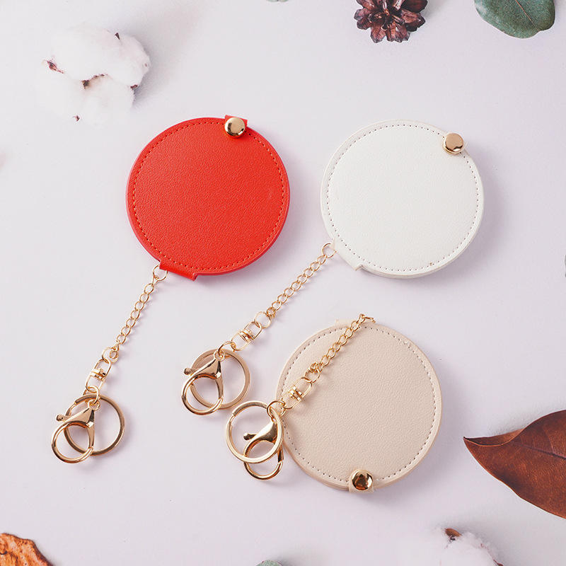 พวงกุญแจกระเป๋าแบบหมุนได้สองด้านทำจากหนัง PU สีแดงกระจกแต่งหน้าพกพาได้โลโก้ออกแบบได้ตามต้องการ
