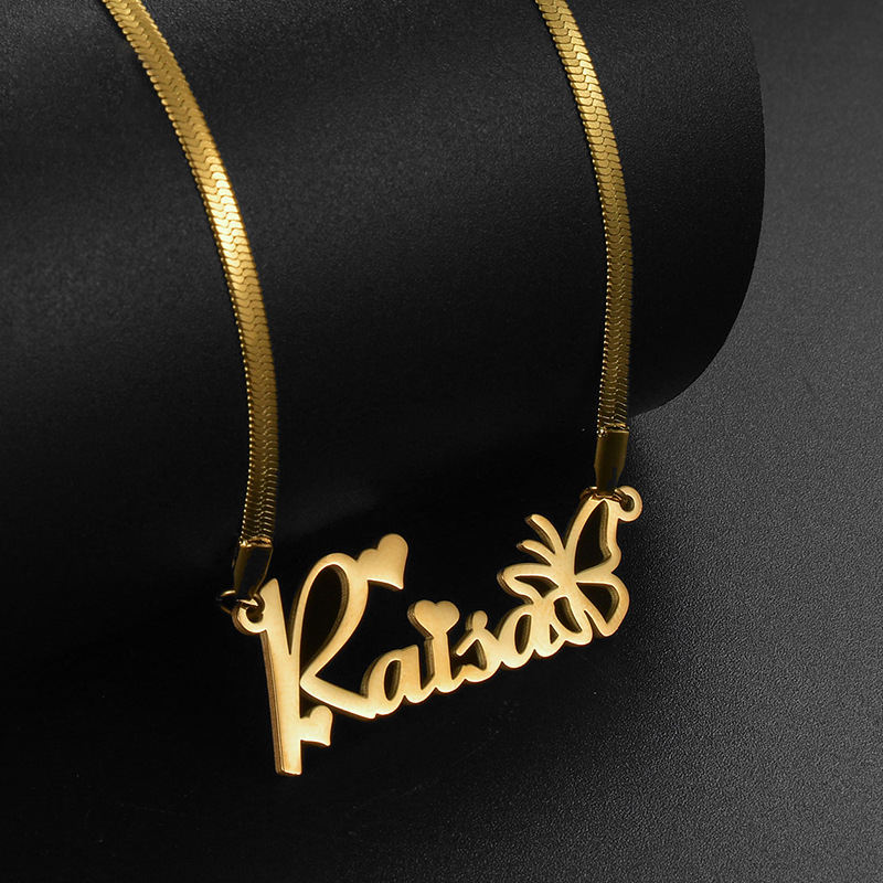 สร้อยคอสแตนเลสแบบมีตัวอักษรผีเสื้อสลักชื่อสร้อยคอออกแบบได้ตามต้องการสำหรับผู้หญิงผู้ชาย2131 Uionen
