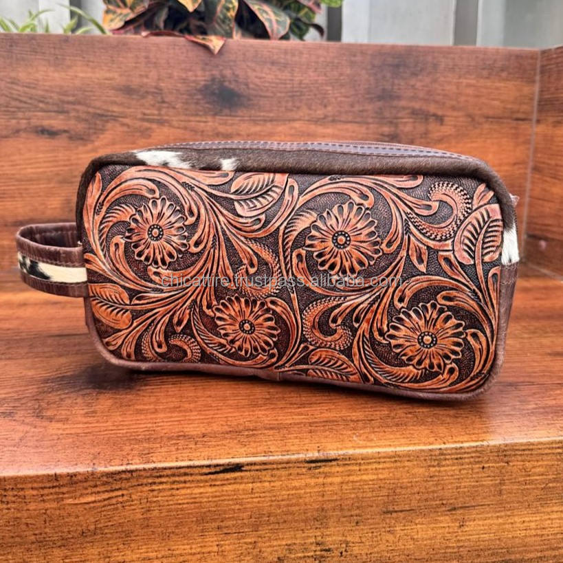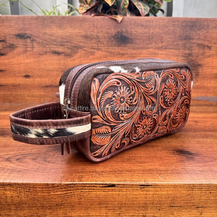 Product name:Hair On Tooled Leather Cosmetic Pouch
