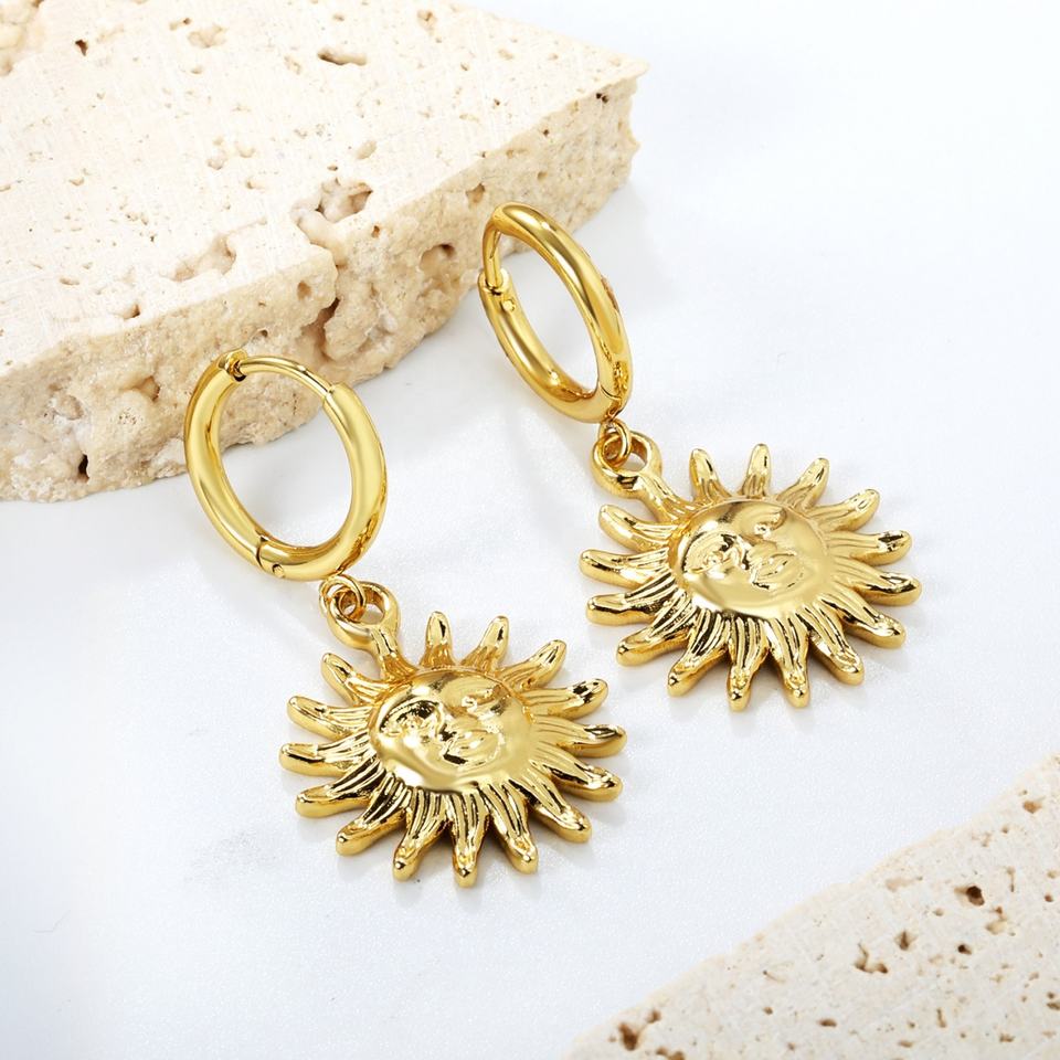 ต่างหูห้อยประดับเพชรแบบปรับได้ วัสดุสแตนเลสชุบทอง ดีไซน์ทันสมัย ชุบทอง 18K รูปทรงดวงอาทิตย์ สำหรับผู้หญิง