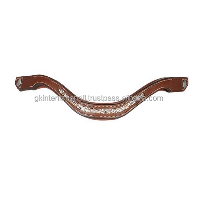 สายรัดคิ้วหนังรูปม้าประดับกลิตเตอร์ประดับคริสตัลทรงโค้งลึกแบบไม่เหมือนใครพร้อมห่วงกระดุม
