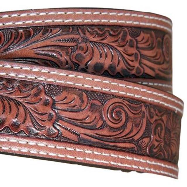 เข็มขัดหนังผู้ชายแบบตะวันตกปักลายดอกไม้สองชั้นแบบคลาสสิกสำหรับกางเกงยีนส์หรือกางเกงหัวเข็มขัดทองเหลืองดีไซน์ส่วนตัว