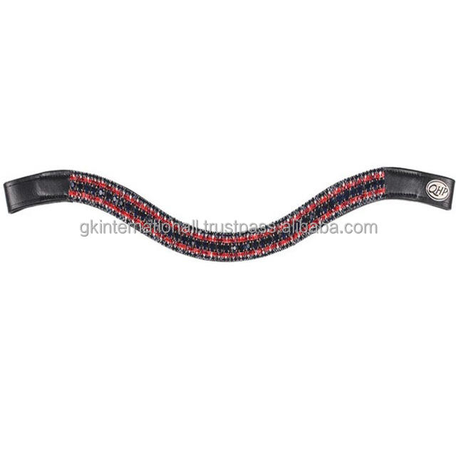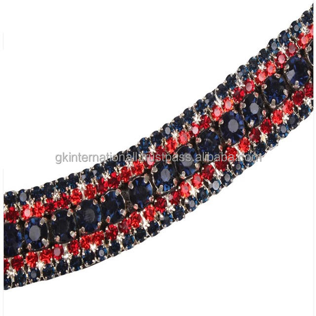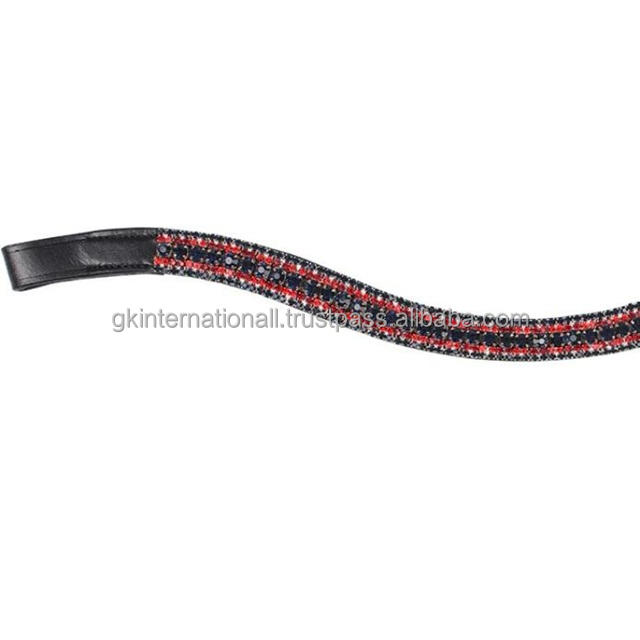 สายรัดหนังม้าสีน้ำตาล havana ห่วงโซ่ทรงโค้งคริสตัลประกายสีแดงและสีดำดีไซน์แบบส่วนตัว