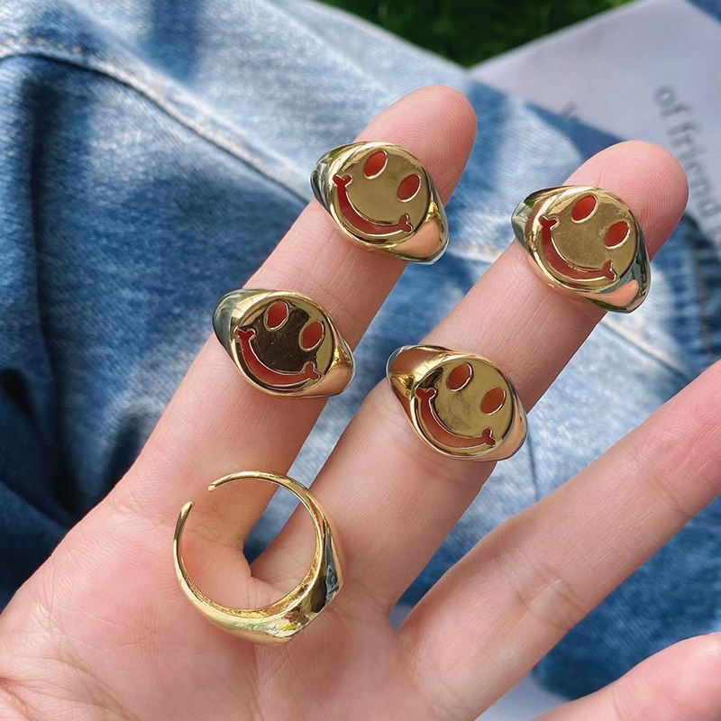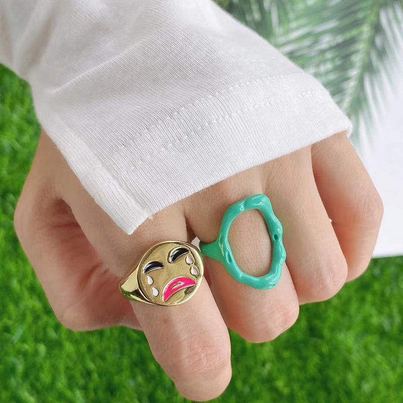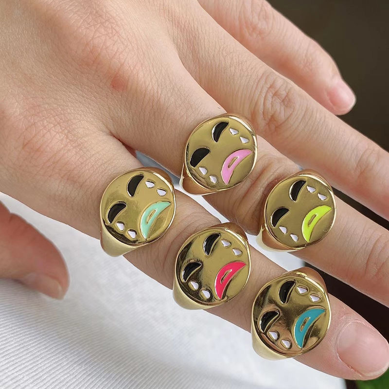 แหวนเคลือบลายอิโมจิเศร้าทองเหลือง,แหวนนิ้วมือน่ารักทันสมัยมีสีสันอุปกรณ์ขายส่ง