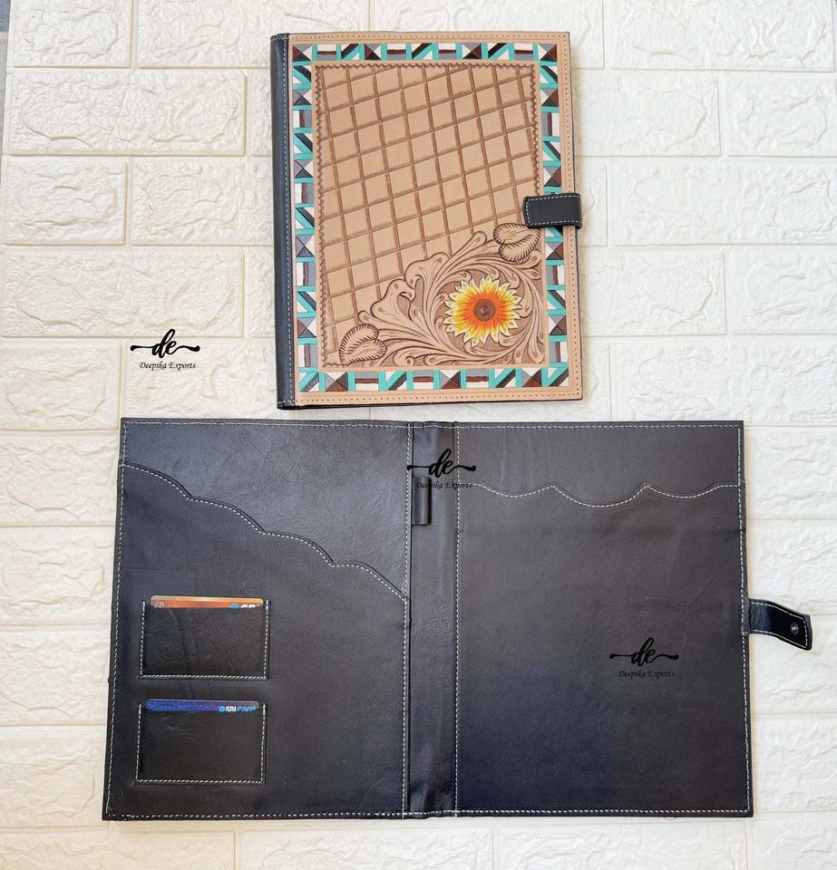 แฟ้มสะสมผลงานแบบมีดีไซน์ตามสั่งสมุดโน๊ตหนังแท้อเนกประสงค์สำหรับนักธุรกิจ