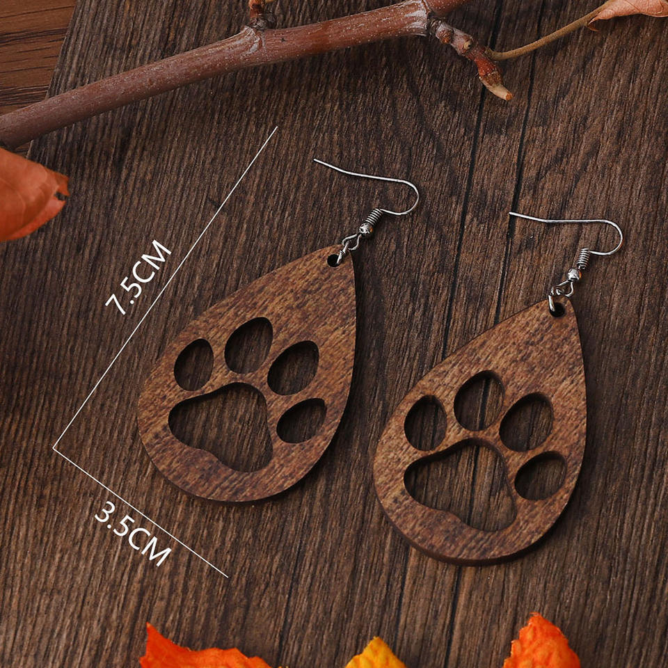 ต่างหูไม้สไตล์โบฮีเมียนแบบเลือกสองด้านเครื่องประดับสำหรับคนรักสัตว์เลี้ยงเป็นมิตรกับสิ่งแวดล้อมดีไซน์อุ้งเท้าสัตว์เลี้ยงแบบห้อยทำจากโลหะผสมทันสมัย