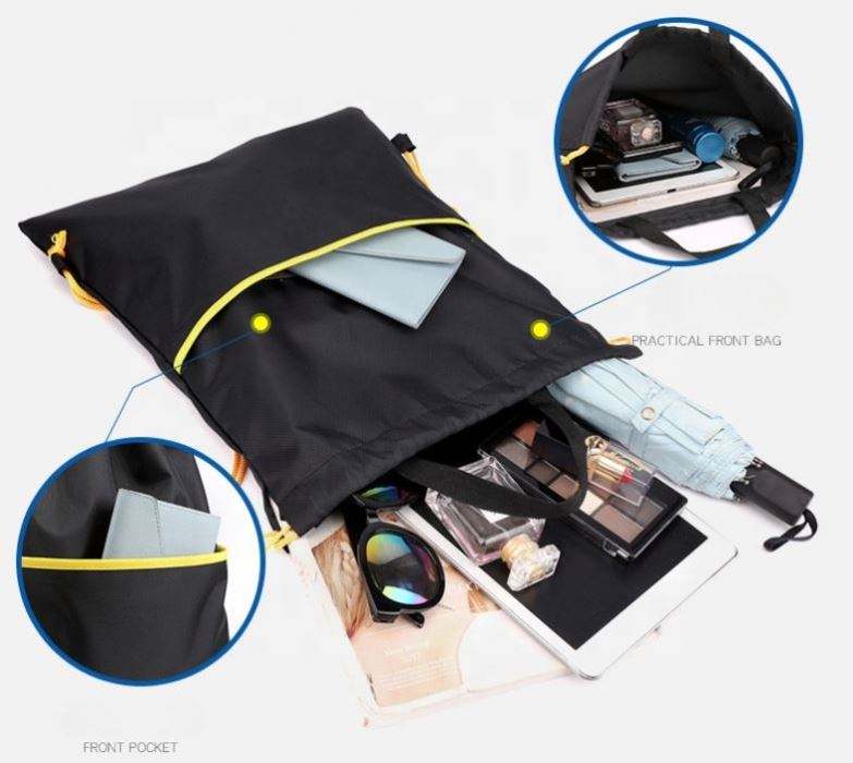 กระเป๋าเป้สะพายหลังแบบมีเชือกผูกพร้อมช่องซิป กระเป๋ากันน้ำสำหรับออกกำลังกาย กีฬา ท่องเที่ยว และกิจกรรมชายหาด