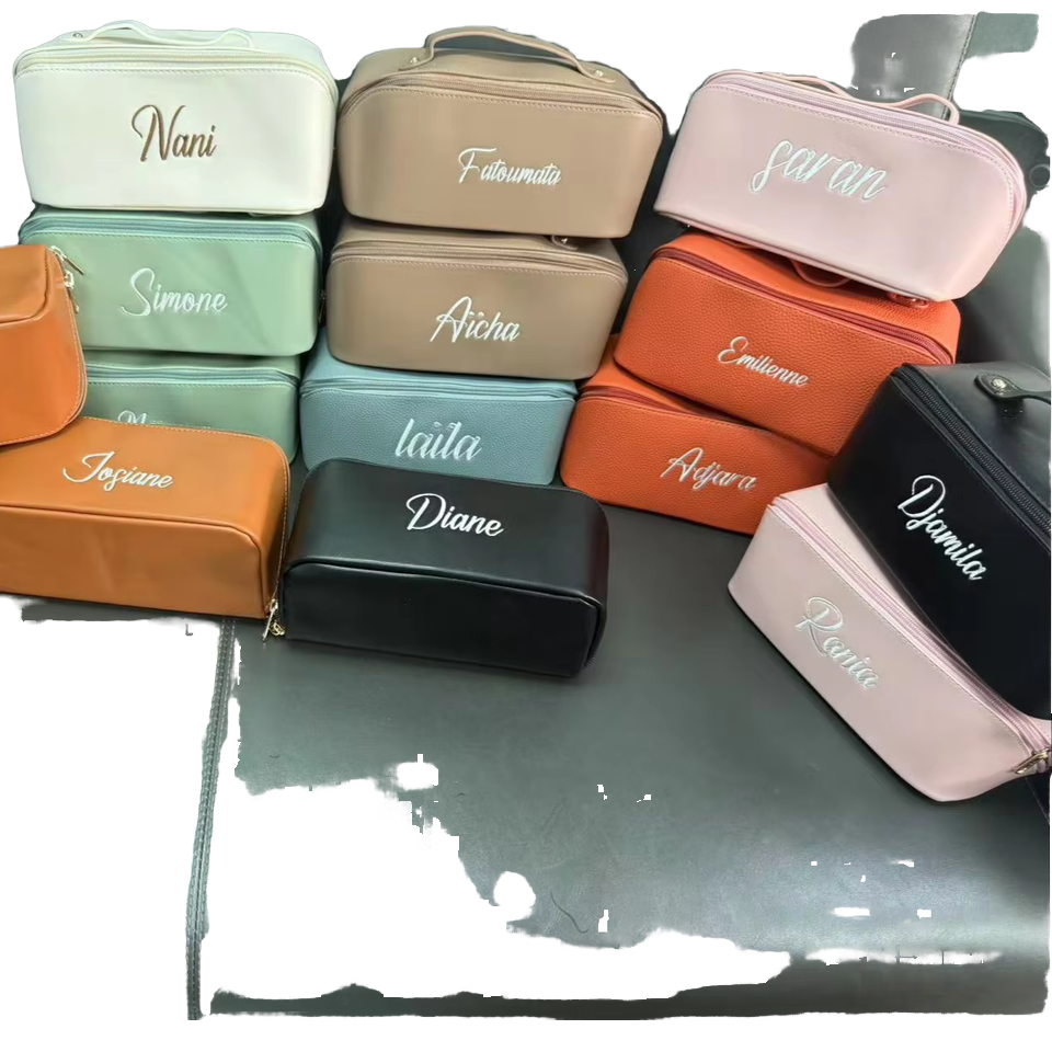 กระเป๋าแต่งหน้าปักชื่อสำหรับงานแต่งงานเครื่องประดับแฟชั่นของเพื่อนเจ้าสาวที่เก็บของสำหรับเดินทาง