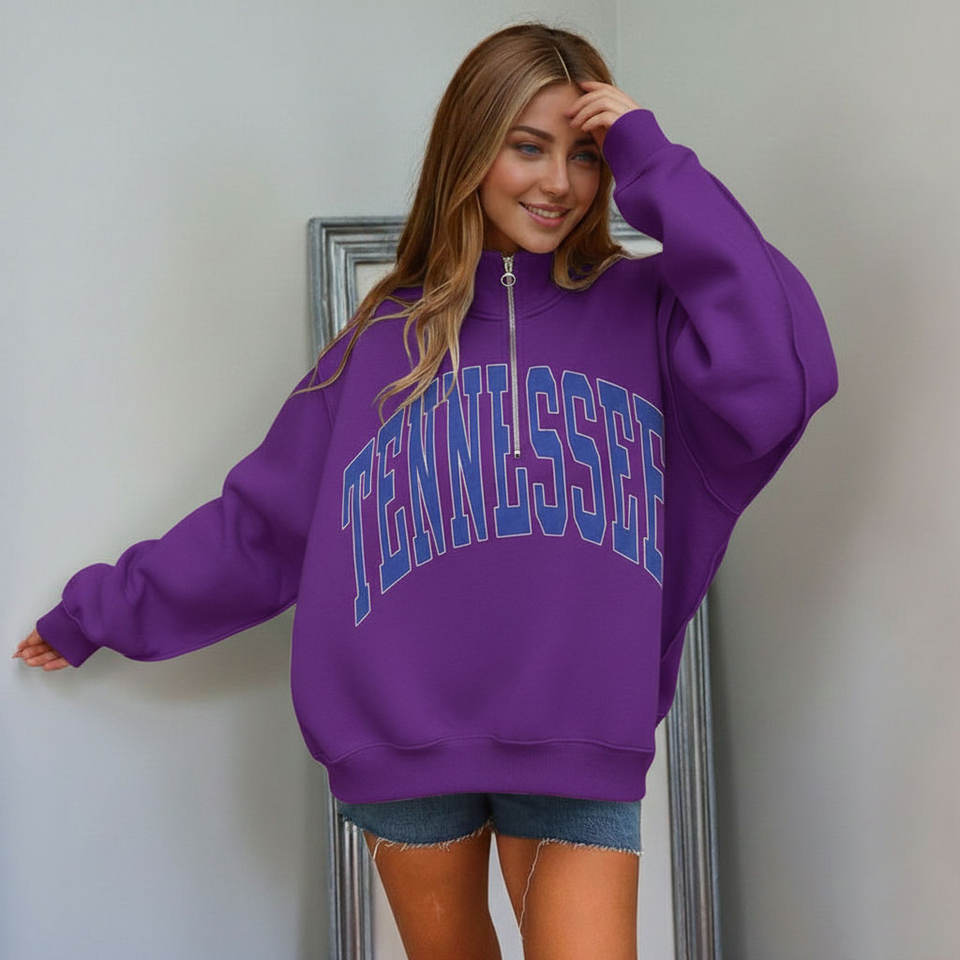 เสื้อสเวตเชิ้ตคอเต่าครึ่งซิปผ้าเฟรนช์เทอร์รี่ปักลายตัวอักษรสำหรับผู้หญิง สไตล์ลำลอง เป็นมิตรกับสิ่งแวดล้อม 100% สำหรับฤดูหนาว