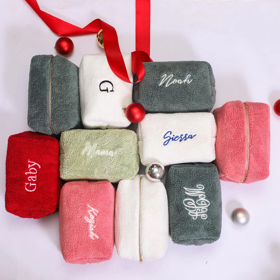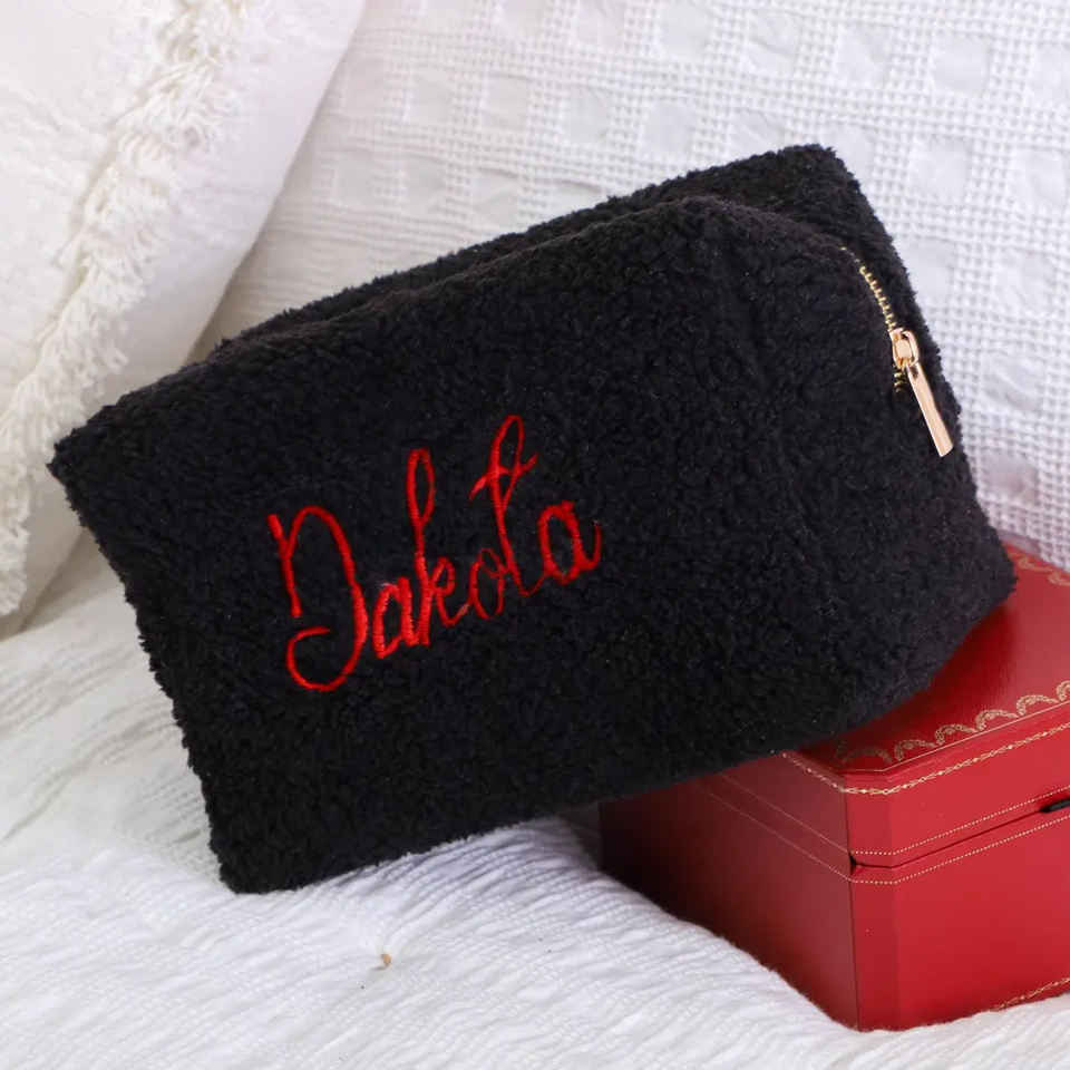 กระเป๋าเครื่องสำอางขนเฟอร์แบบส่วนตัว ปักชื่อตามสั่ง สำหรับผู้หญิง