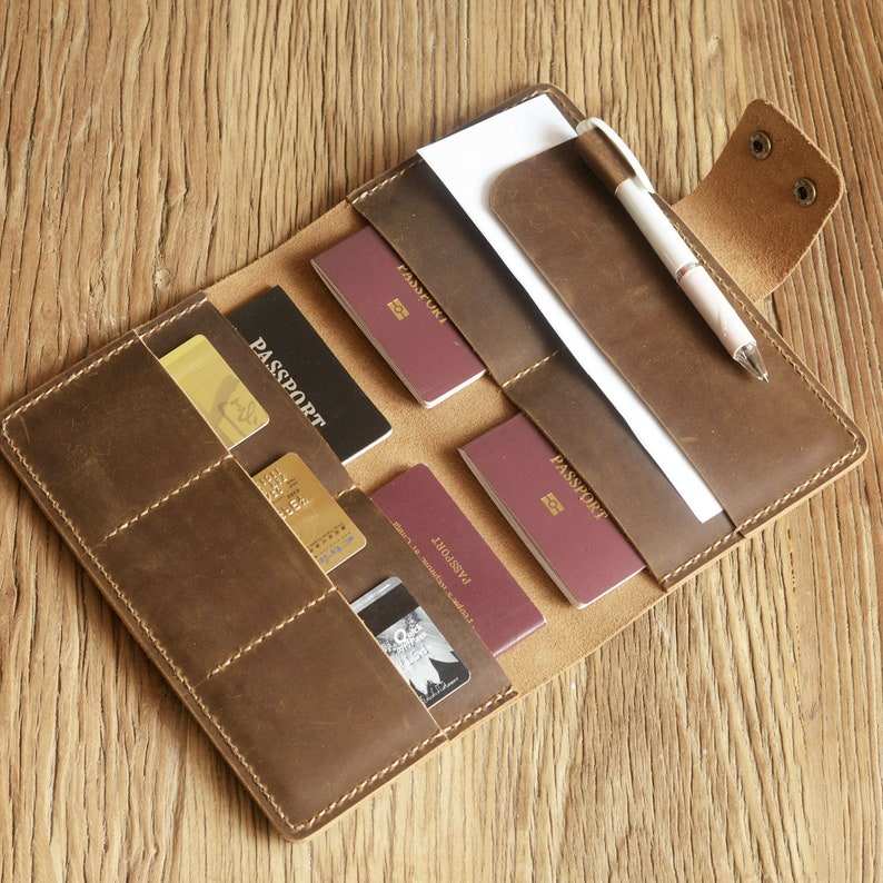 ที่ใส่หนังสือเดินทาง4ใบสำหรับครอบครัวหนังแท้แบบส่วนบุคคลกระเป๋าสตางค์ปกกระดุมปิด LFPH-0003สไตล์วินเทจ