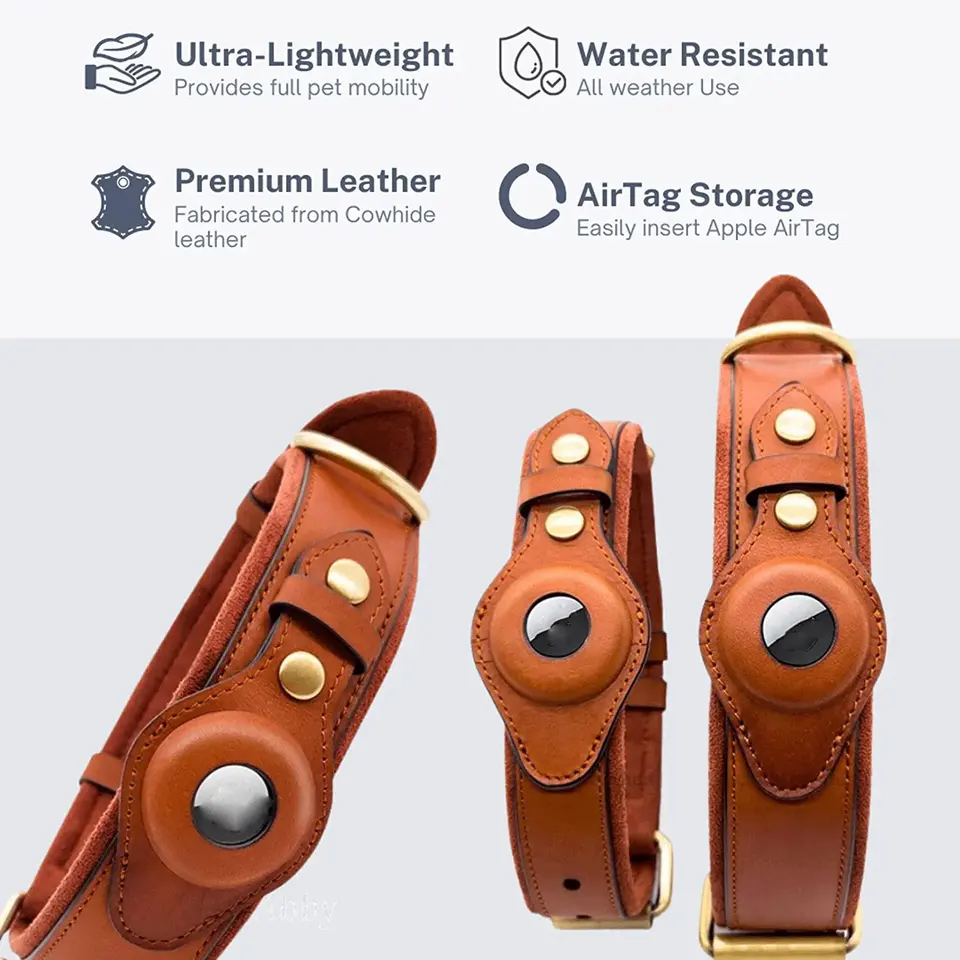 ปลอกคอสัตว์เลี้ยงหนังแท้แบบปรับได้สำหรับ Apple Airtag เคสป้องกันการสูญหายสำหรับ Apple Airtag