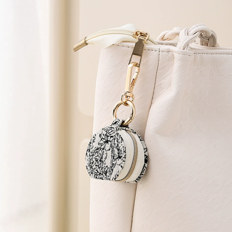 กล่องใส่เครื่องประดับแบบพกพาส่วนตัว กล่องเครื่องประดับหนัง PU ทรงกลมขนาดเล็ก พร้อมพวงกุญแจ