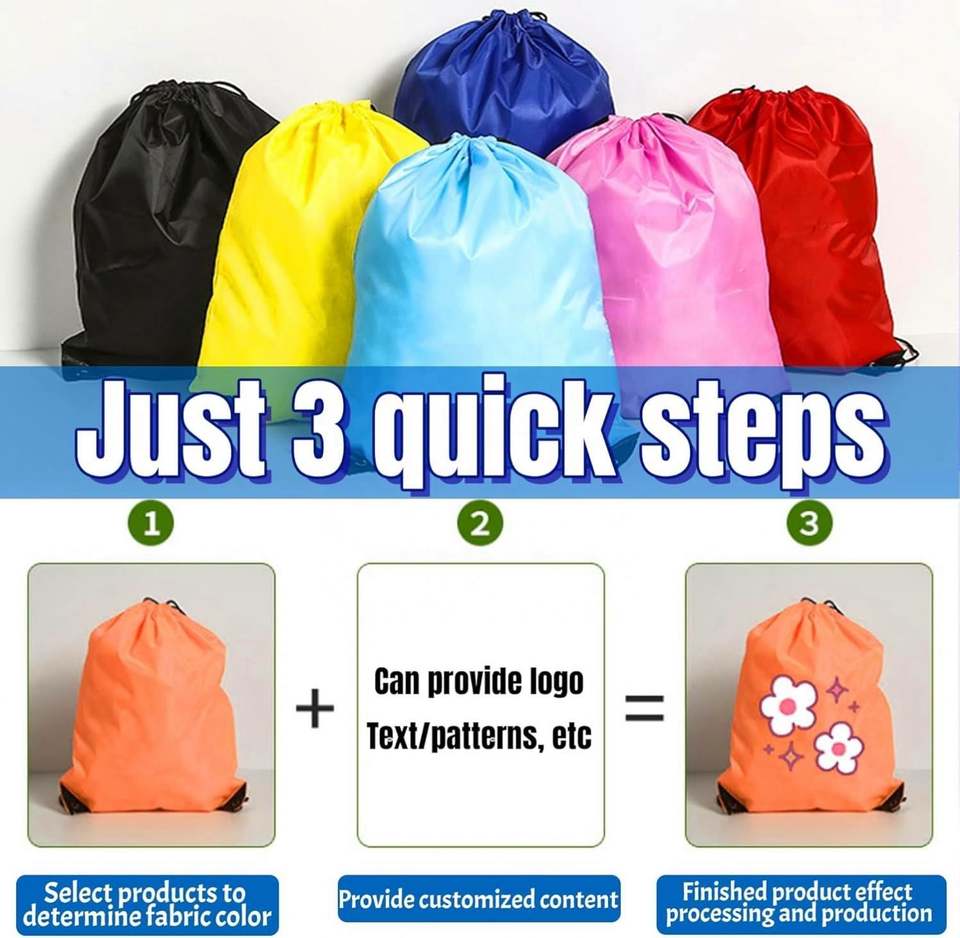 กระเป๋าเป้สะพายหลังแบบมีเชือกผูกสำหรับออกกำลังกาย ปรับแต่งโลโก้ ขนาด สี ได้ตามต้องการ กระเป๋าออกกำลังกายแบบมีเชือกผูกสำหรับโปรโมชั่น ทำจากไนลอนและโพลีเอสเตอร์