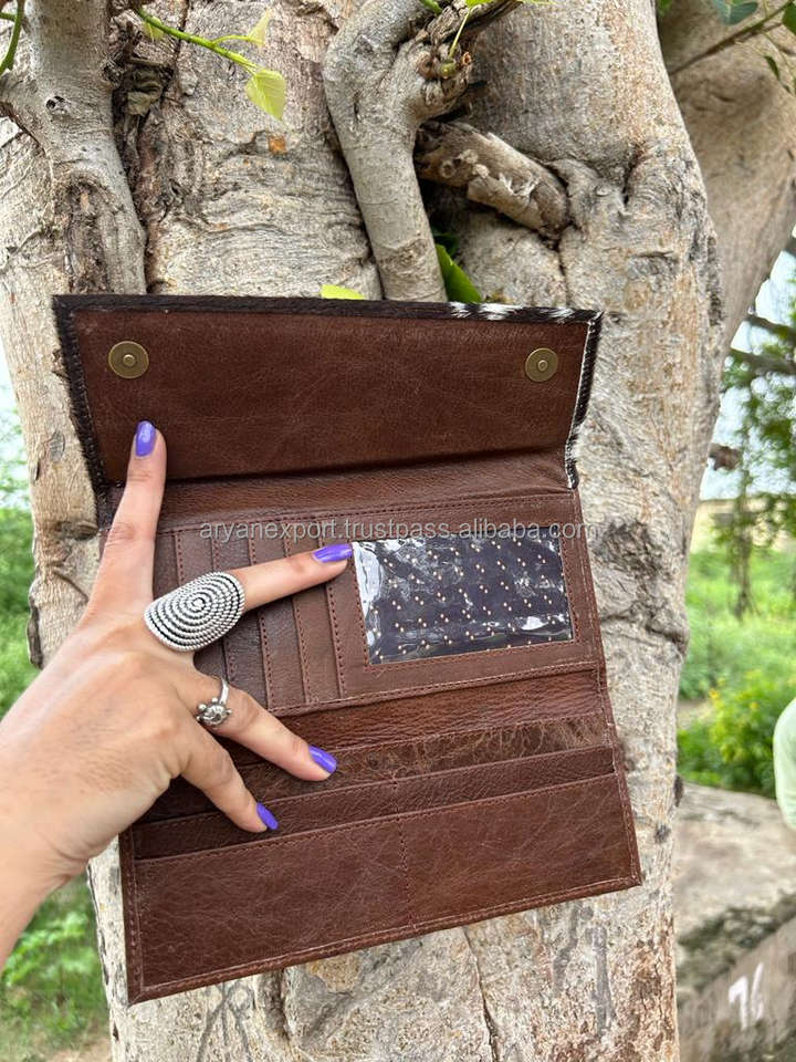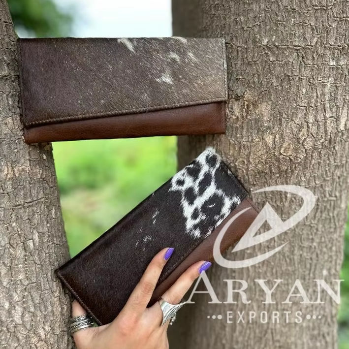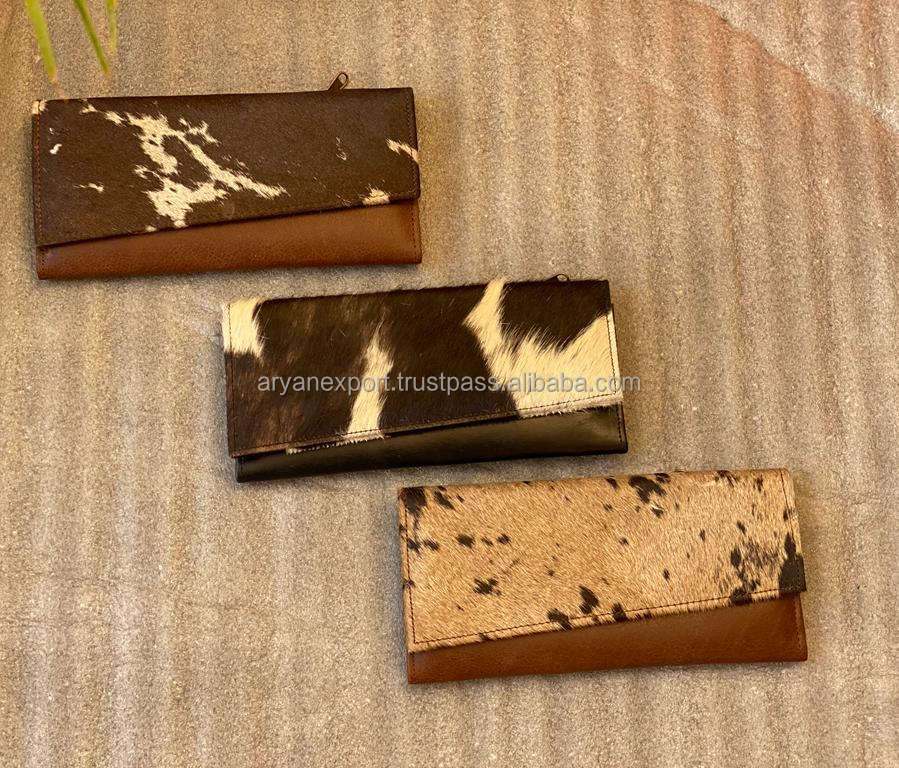 Personalized Hair on Cowhide Wallet Western Genuine Leather Large Trifold Wallet Card Holder Zip Coin Pocket Travel Women Wallet