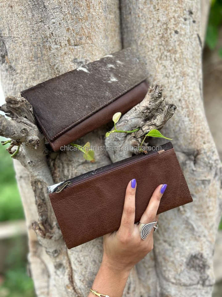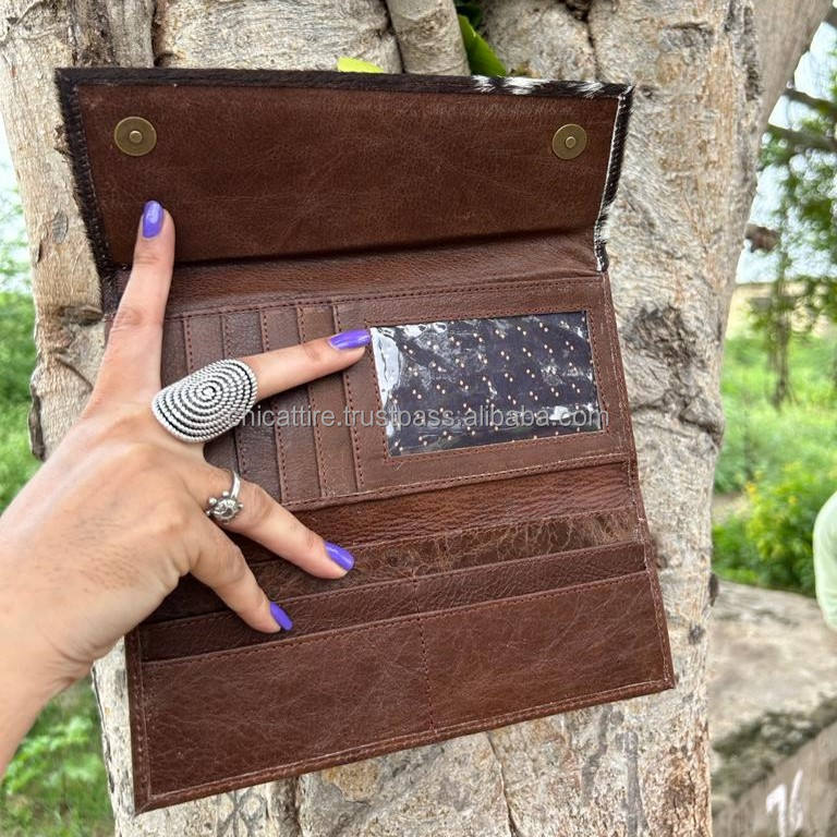 กระเป๋าสตางค์หนังวัวแบบพับสามทบขนาดใหญ่มีซิปกระเป๋าเงินสำหรับเดินทางกระเป๋าเงินผู้หญิงหนังแท้แบบตะวันตกมีซิป
