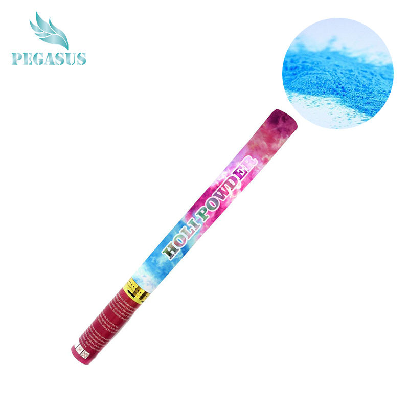 ปืนลูกปาหลากสีแบบพกพาที่ปรับแต่งได้ผงสำหรับเทศกาลฮอลลี่สำหรับปาร์ตี้ป๊อปเปอร์เพกาซัส