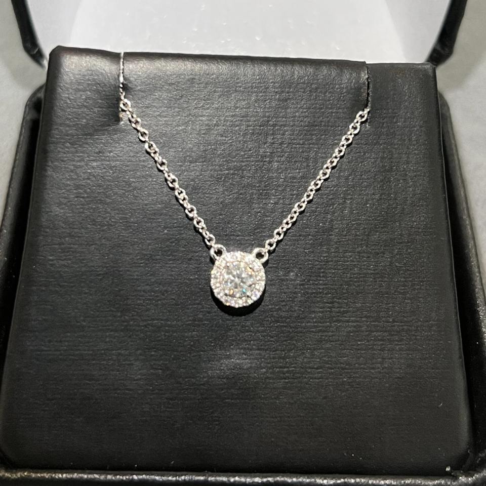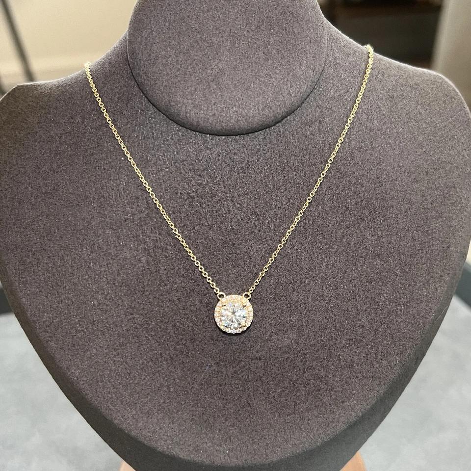 สร้อยคอจี้เพชรทรงโซลิแตร์แบบฮาโล ทองคำแท้ 14k ประดับเพชร VVS ที่ได้รับการรับรองจาก IGI สำหรับผู้หญิง ราคาขายส่ง