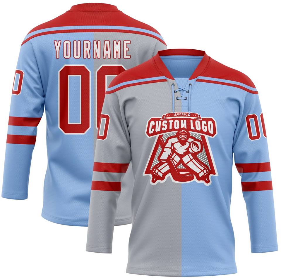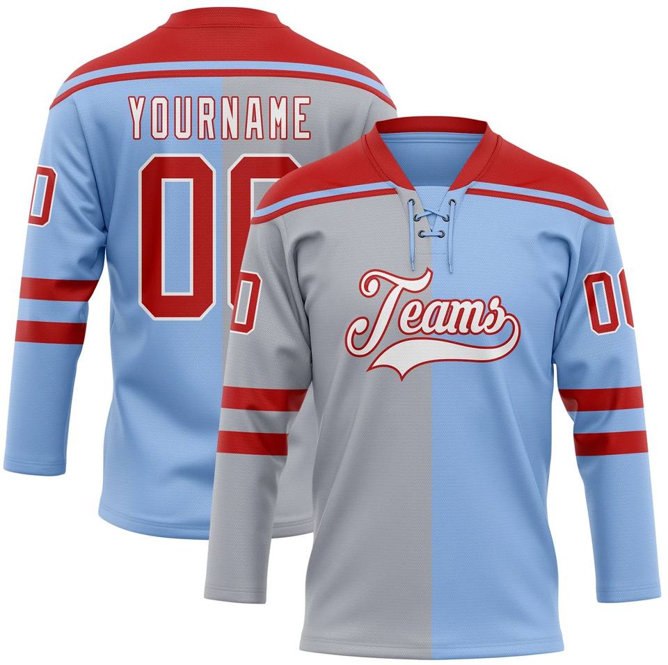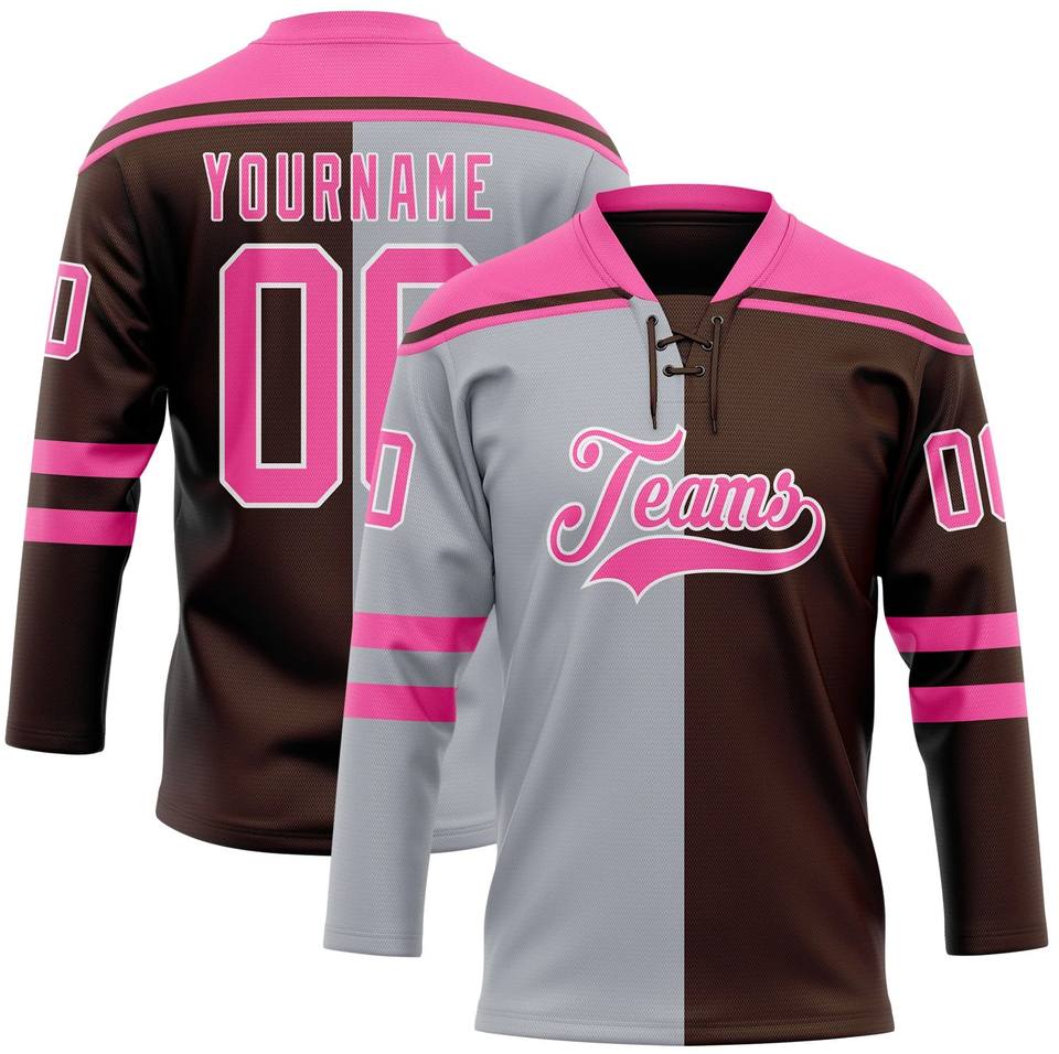 เสื้อฮอกกี้น้ำแข็งคอวีแบบสั่งทำพิเศษ โพลีเอสเตอร์ 100% ป้องกันแบคทีเรีย แห้งเร็ว พิมพ์ชื่อ เบอร์ โลโก้ ตามสั่ง