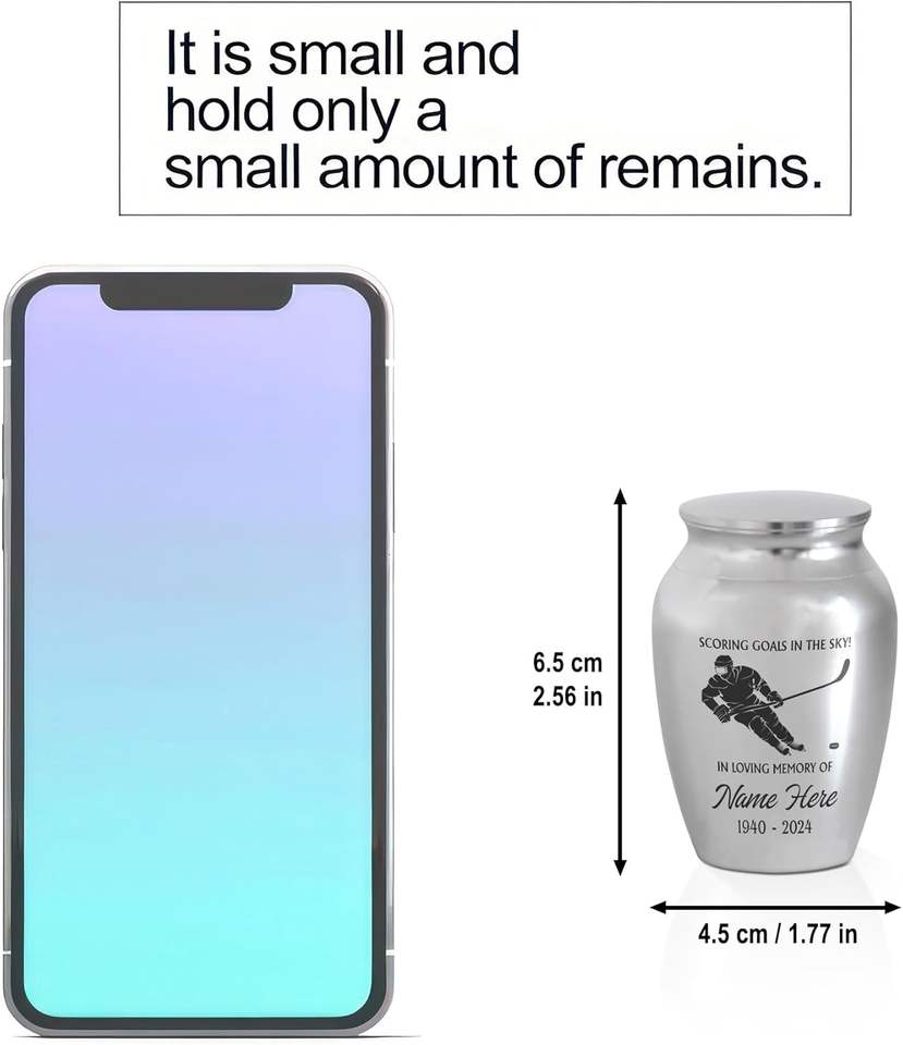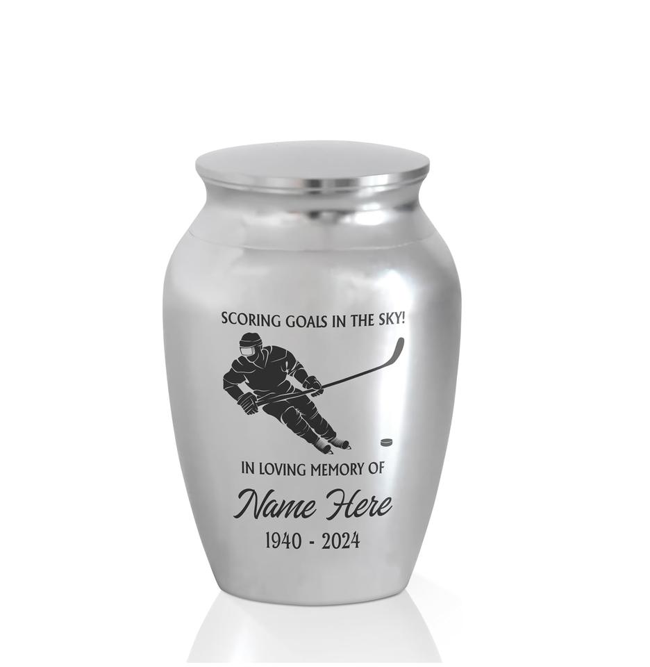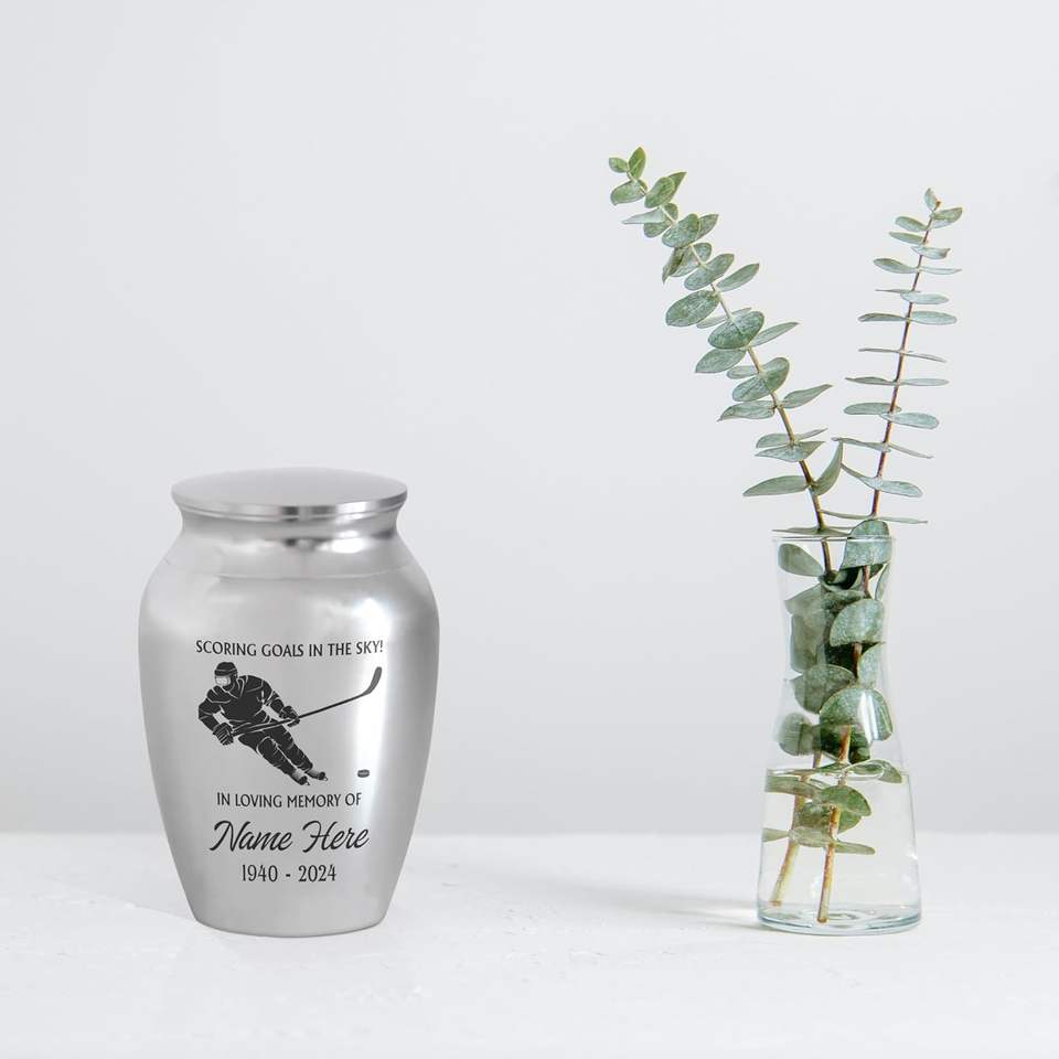 ฮ็อกกี้น้ำแข็งส่วนบุคคลโกศขนาดเล็กสำหรับมนุษย์ขี้เถ้าของที่ระลึกของขวัญสำหรับโกศสำหรับขี้เถ้าของมนุษย์ในความทรงจำที่กำหนดขนาดเองเงิน