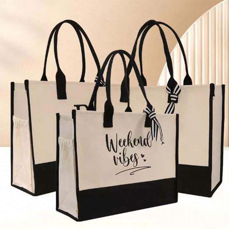 กระเป๋าผ้าแคนวาสปักอักษรย่อส่วนตัว กระเป๋าหิ้วผ้าปอกระเจาสำหรับผู้หญิง ของขวัญปักชื่อ