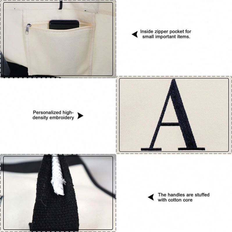 กระเป๋าผ้าแคนวาสปักอักษรย่อส่วนตัว กระเป๋าหิ้วปักโลโก้ตามสั่ง ของขวัญสำหรับผู้หญิง คุณแม่ ครู
