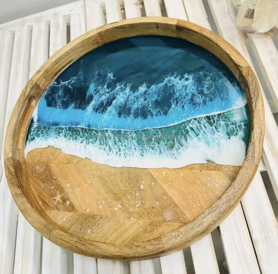 ถาดเสิร์ฟเรซิ่นอีพ็อกซี่ไม้ขนาดใหญ่แบบสั่งทำพิเศษ, ถาดชาร์คูเตอรีไม้วอลนัทอีพ็อกซี่จากอินเดีย