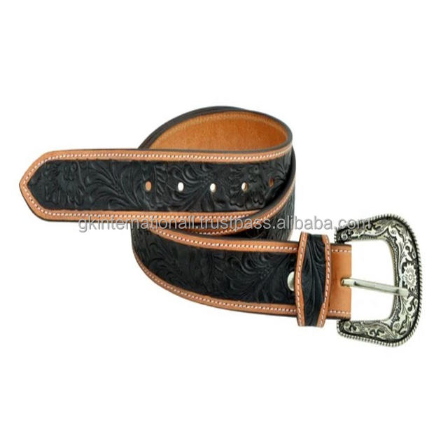 เข็มขัดหนังแบบตะวันตกสำหรับทุกเพศเข็มขัดเครื่องมือหนังสไตล์ตะวันตกสลักลายดอกไม้แบบมีสไตล์เฉพาะ
