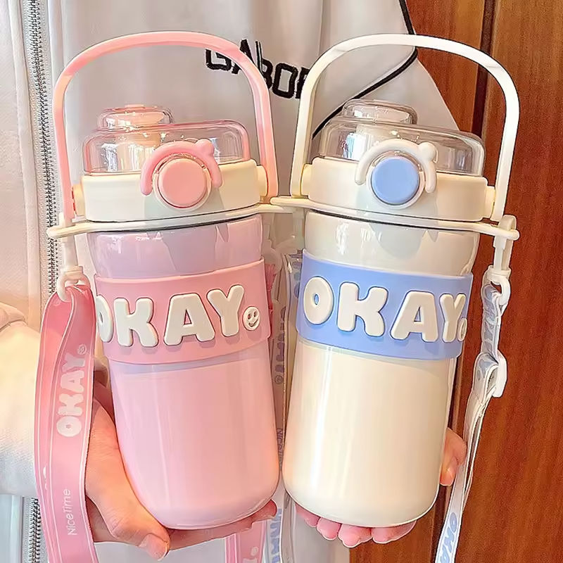 แก้วน้ำสแตนเลสสตีลแบบพกพา ขนาดใหญ่ ดีไซน์ทันสมัย เก็บอุณหภูมิได้ เป็นมิตรกับสิ่งแวดล้อม พร้อมหลอดดูดสองแบบ ปรับแต่งได้ตามต้องการ