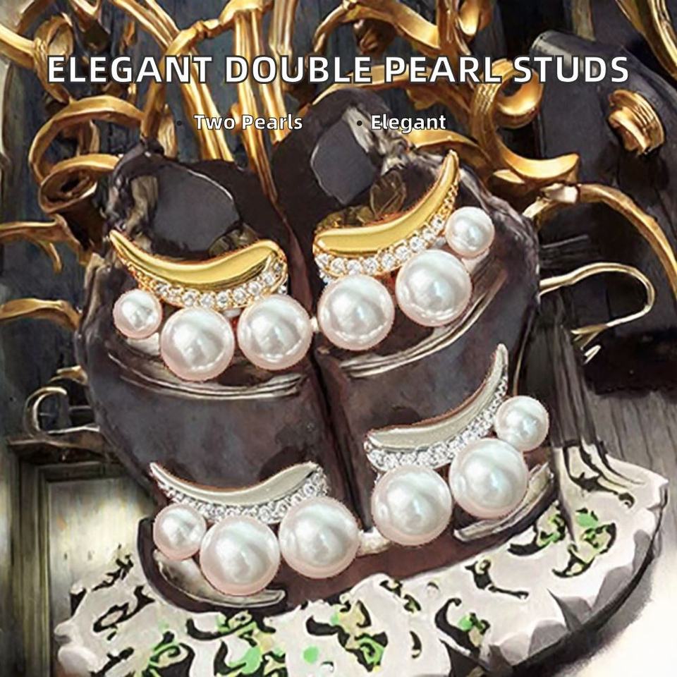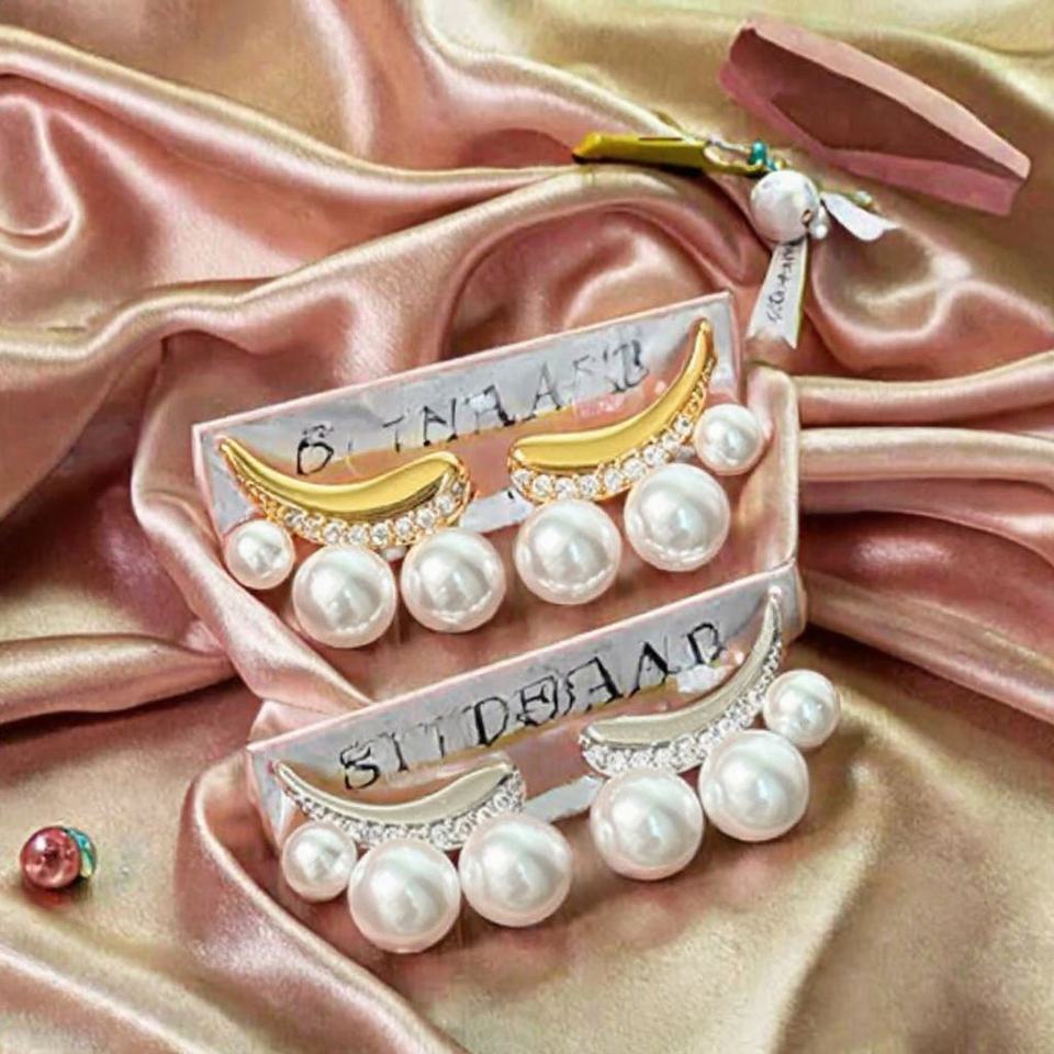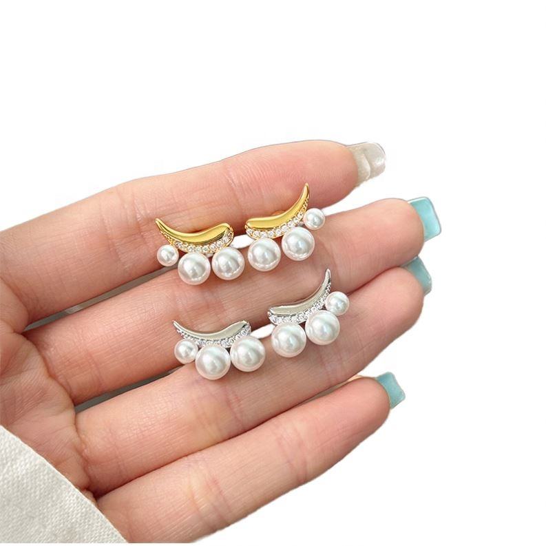 ต่างหูแบบติดหูทรงพระจันทร์ประดับเพชรซิรคอนและมุก ชุบโรเดียมทองเหลือง สไตล์หรูหราแบบเฉพาะตัว สำหรับทุกเพศ