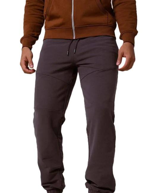 กางเกงวอร์มขาตรงผ้าคอตตอนสำหรับผู้ชายทรงหลวมสีพื้นมีกระเป๋าใส่สบายโลโก้ตามสั่ง