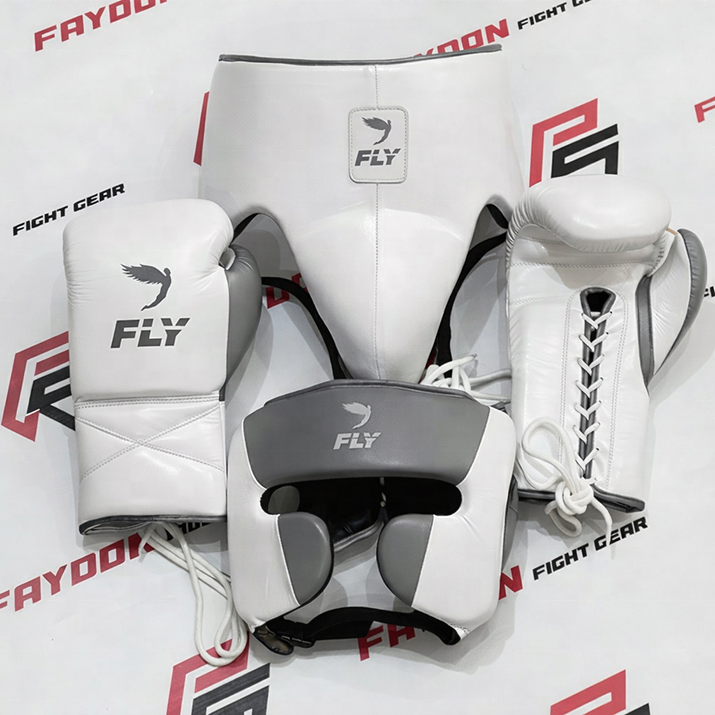 ชุดฝึกซ้อมมวย MMA รุ่นใหม่ สีเทาขาว พร้อมโลโก้ส่วนตัว ขายส่ง หนังแท้ ป้องกันศีรษะและอวัยวะเพศชาย