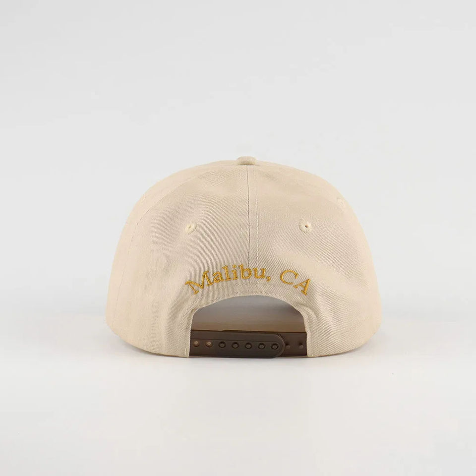 หมวกเบสบอลสีน้ำตาลหมวกกีฬาแบบแบนมี5แผงด้านหลังเป็นพลาสติกรูปทรงสองสี