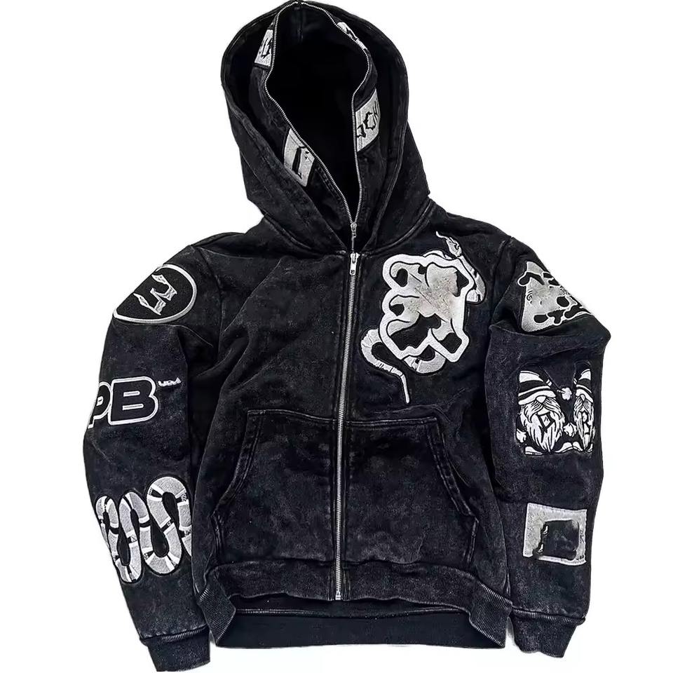 เสื้อฮู้ดสวมหัวแบบถักสำหรับผู้ชายดีไซน์เป็นมิตรต่อสิ่งแวดล้อมแบบปักออกแบบได้ตามต้องการ