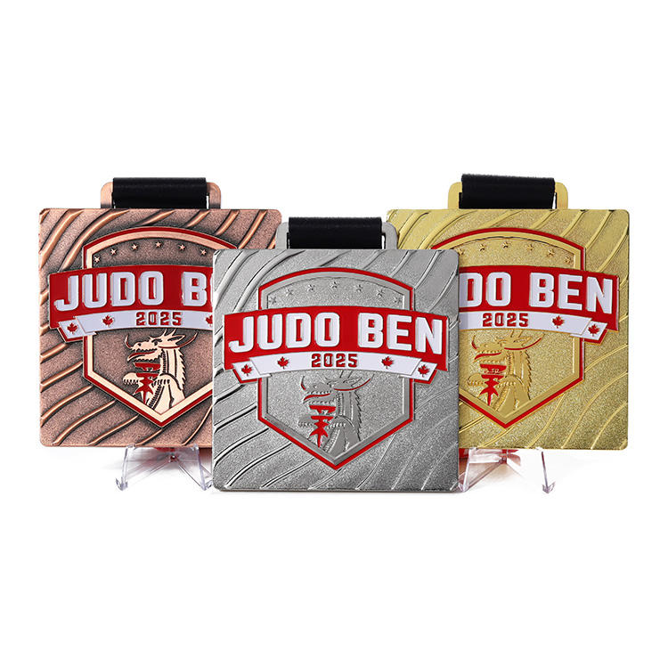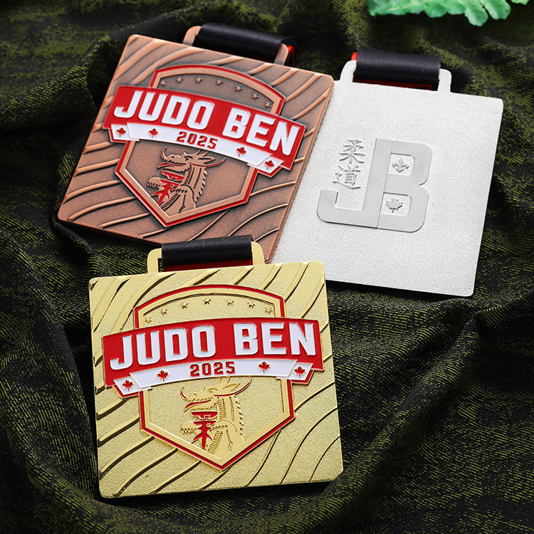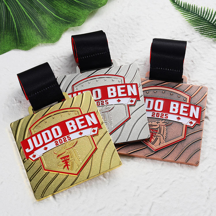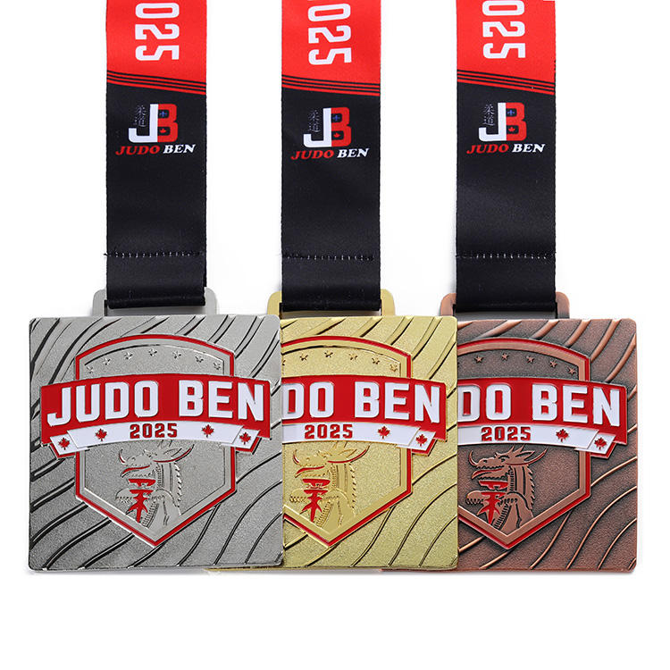 เหรียญโลหะชุบทองแดงสี่เหลี่ยม Jitsu Jitsu เหรียญกีฬาพร้อมริบบิ้นโลหะปรับแต่งได้