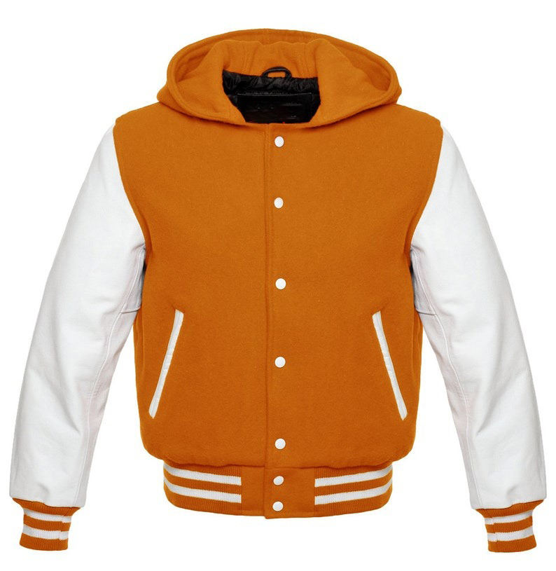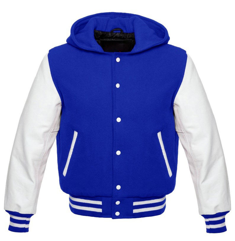 แจ็กเก็ตขนแกะสำหรับผู้ชายเสื้อแจ็คเก็ตแขนหนังมีฮู้ดเสื้อแจ็กเก็ตเลตเทอร์เม็นแบบสั่งทำ