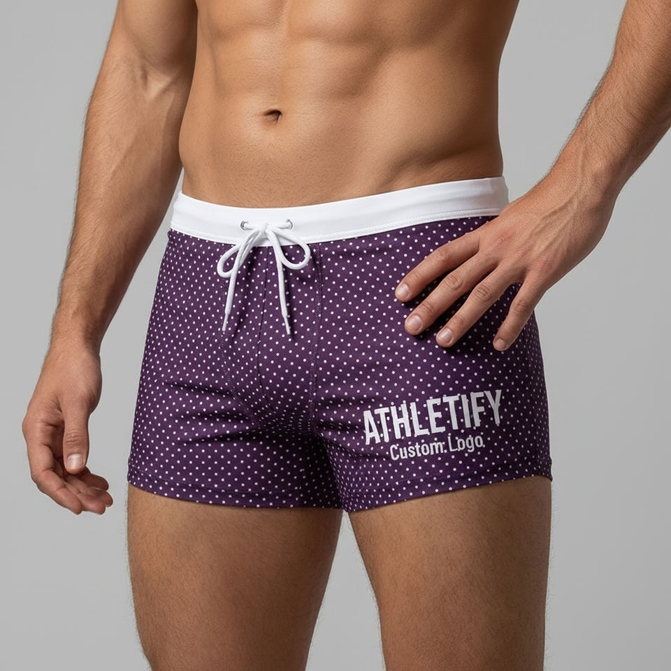 กางเกงว่ายน้ำชายแบบสั่งทำพิเศษ พร้อมโลโก้ แห้งเร็ว UPF50+ ผ้ายืดสแปนเด็กซ์/โพลีเอสเตอร์ กางเกงชายหาด ทนทาน สวมใส่สบาย มีเชือกผูก
