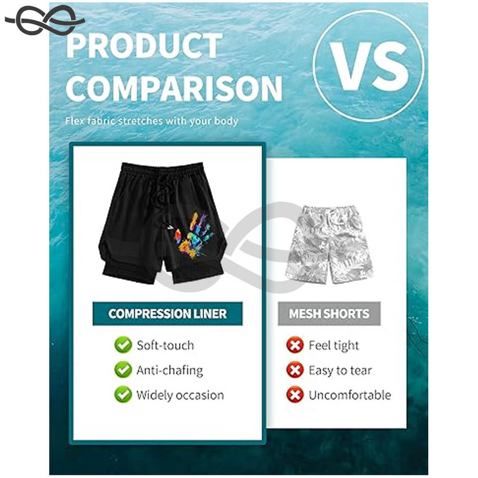 กางเกงขาสั้นออกกำลังกายสำหรับผู้ชายกางเกงขาสั้นออกกำลังกายแบบแอคทีฟ2-in-1มีข้อความออกแบบได้ตามต้องการสำหรับวิ่งชายหาดสวมใส่สบาย