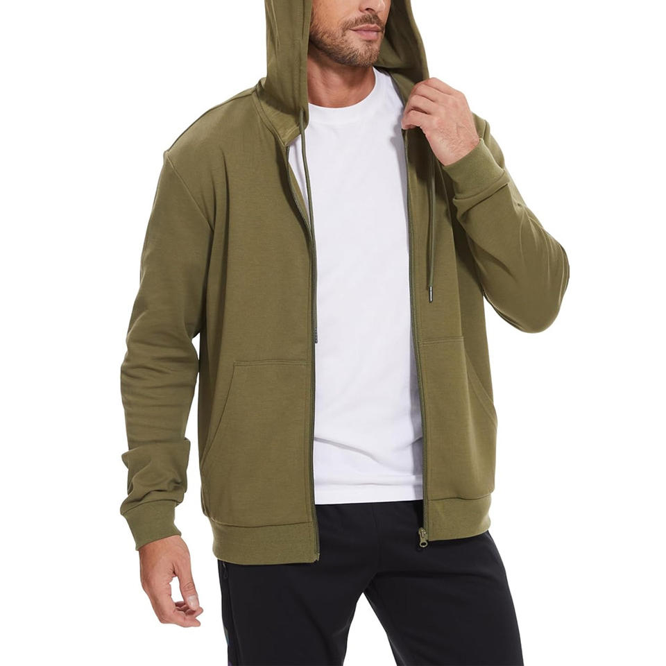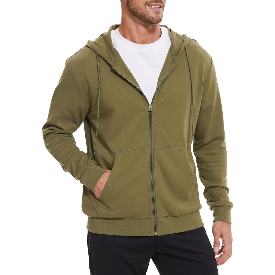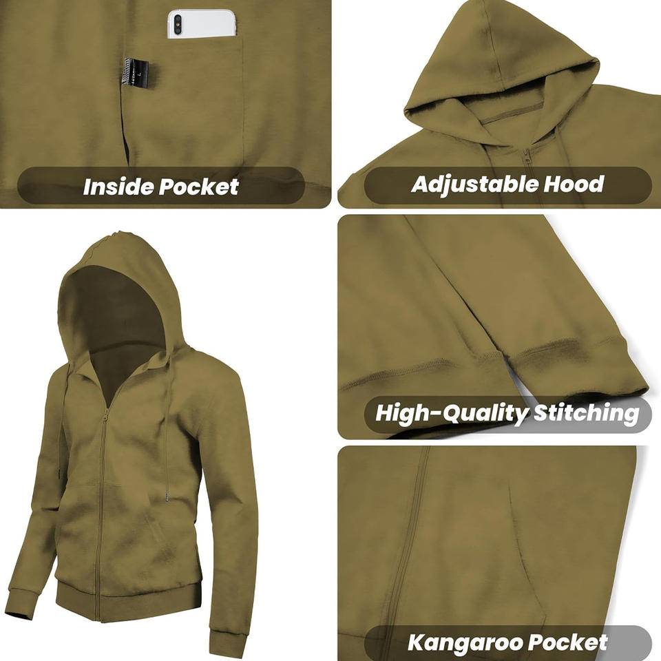 เสื้อมีฮู้ดมีซิปสำหรับผู้ชายมีลายปักโลโก้และป้ายสั่งทำสำหรับแฟชั่นฟิตเนสหรือเครื่องแบบ