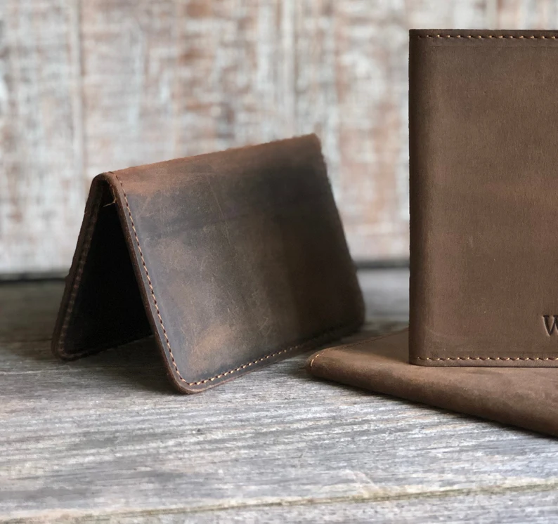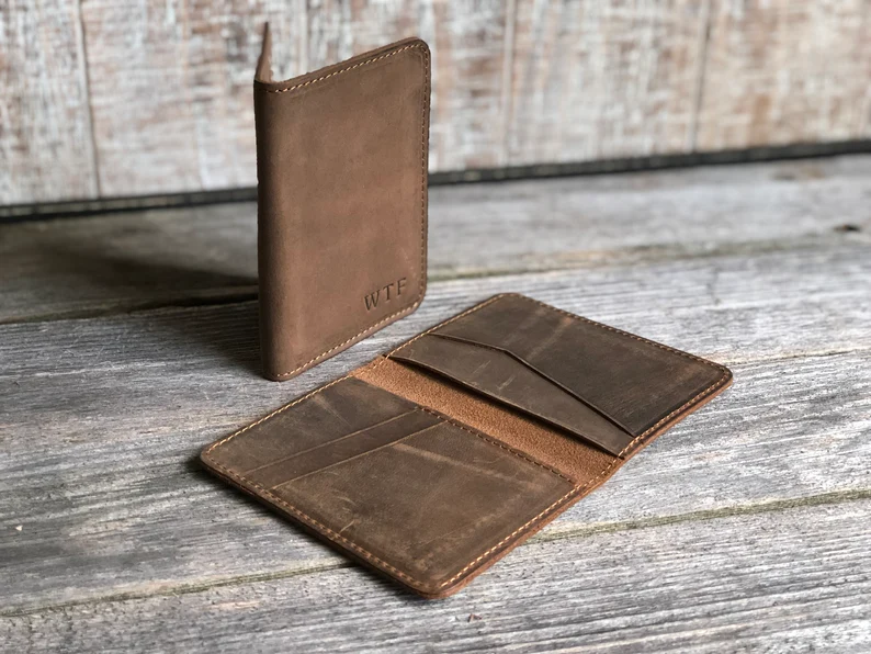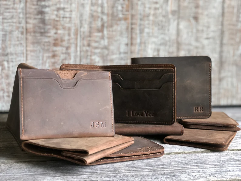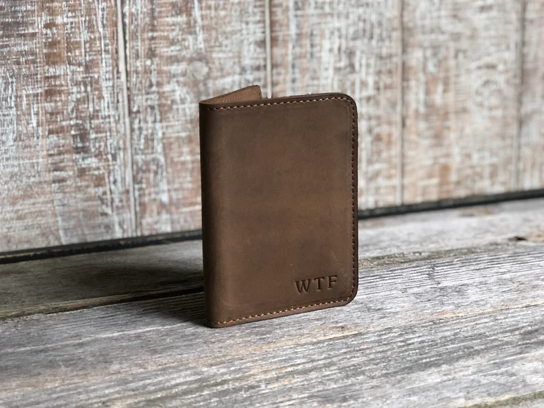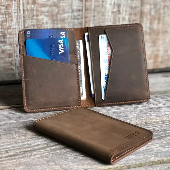Personalized Minimalist Credit Card Wallet Slim Genuine Leather Bifold Wallet for Men Gift