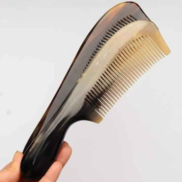 หวีเขาควายธรรมชาติส่วนบุคคลมีช่องว่างฟันแกะสลัก-เหมาะสำหรับวันแม่และของขวัญวันพ่อ