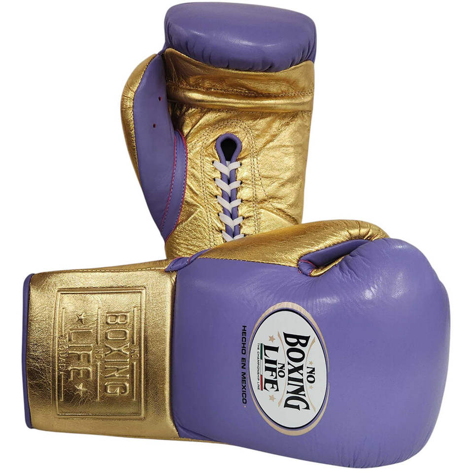 ถุงมือชกมวยหนังยืดสีม่วง/ทอง รุ่น Personalized No Boxing No Life Championship Line สำหรับผู้ใหญ่