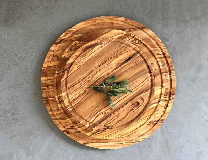 เขียงไม้มะกอกอุตสาหกรรมแบบส่วนตัวสำหรับพิซซ่าและสเต็ก | เขียงไม้ขนาดใหญ่ | ถาดเสิร์ฟอาหารเกรดอาหารสำหรับเป็นของขวัญ