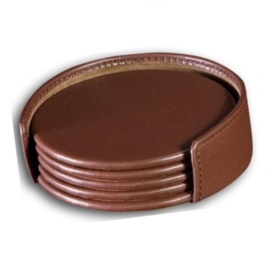 ชุดแผ่นรองแก้วหนัง PU สีน้ำตาลแบบมีแผ่นรองแก้วทรงกลมหรูหรา4ชิ้นมีดีไซน์ตามสั่ง