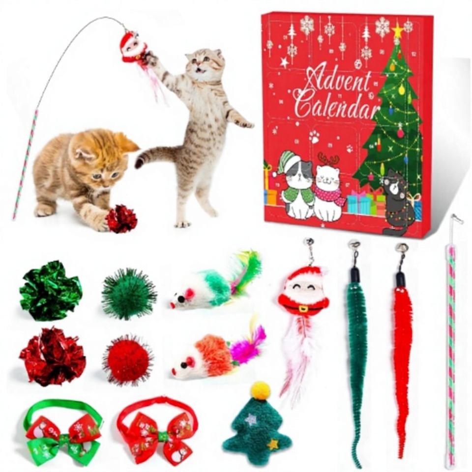 ปฏิทินนับถอยหลังวันคริสต์มาสสำหรับสัตว์เลี้ยงแบบปรับแต่งได้ กล่องของขวัญแบบสุ่ม ของเล่นแมวแบบอินเทอร์แอคทีฟ DIY ลูกบอลขนนกพร้อมกระดิ่ง ของขวัญทำจากผ้าฝ้ายและพลาสติก