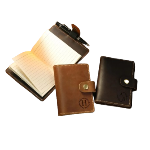สมุดบันทึกกระเป๋าหนังพร้อมที่ใส่ปากกา